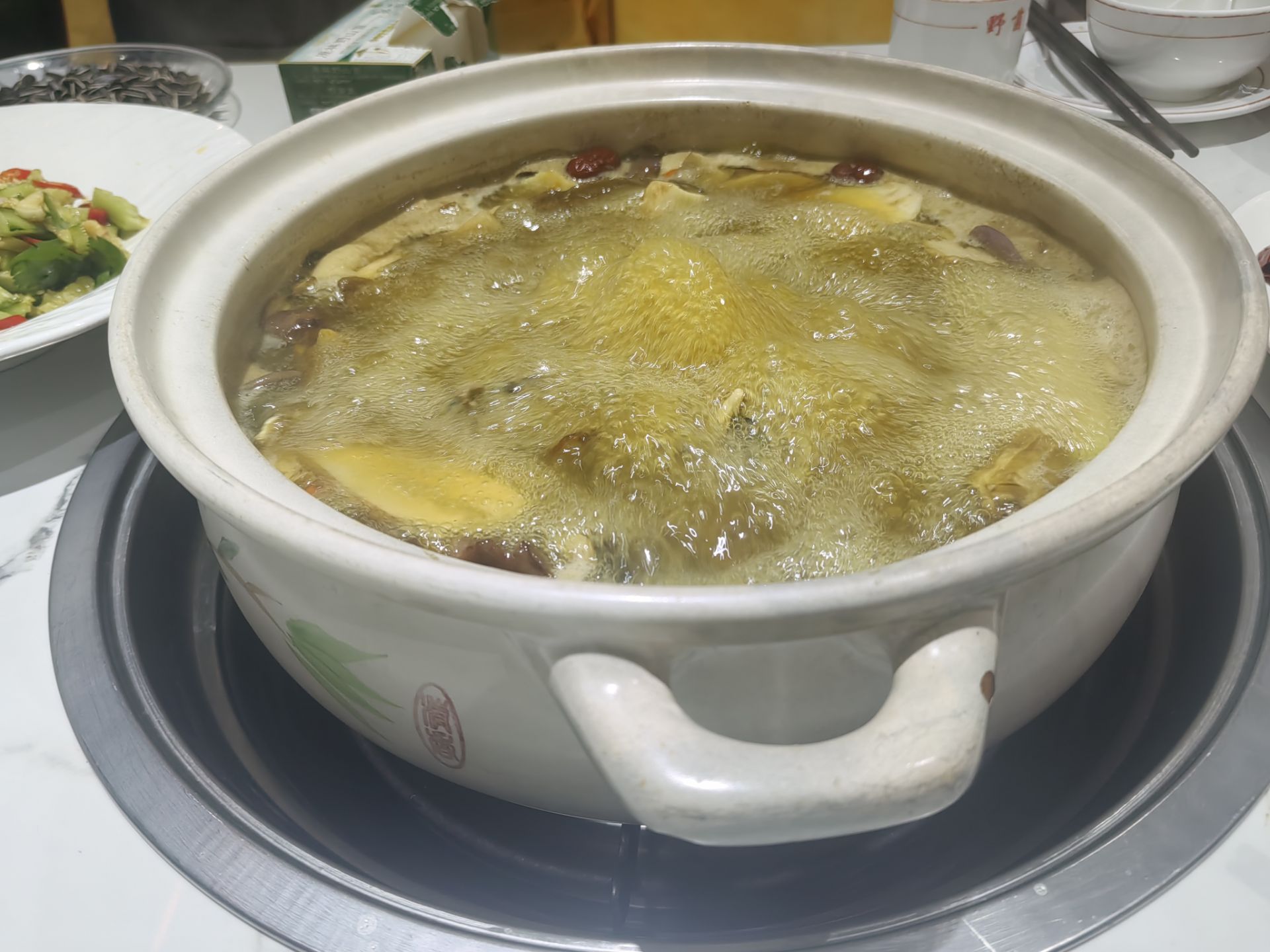 野生菌也是不得不品的环节。在水厂的强烈要求下,我们来到了一家当地连锁的野生菌火锅店,点了炒见手青,又另外煮了一锅野生菌汤锅。炒出的见手青口味新鲜又略带一丝陈腐气息,又吸满了料汁,为之增添了不少人间烟火气,而菌汤锅的汤则醇得像奶,鲜味更是一绝。不管用这过汤煮什么,吃起来都是一种享受。